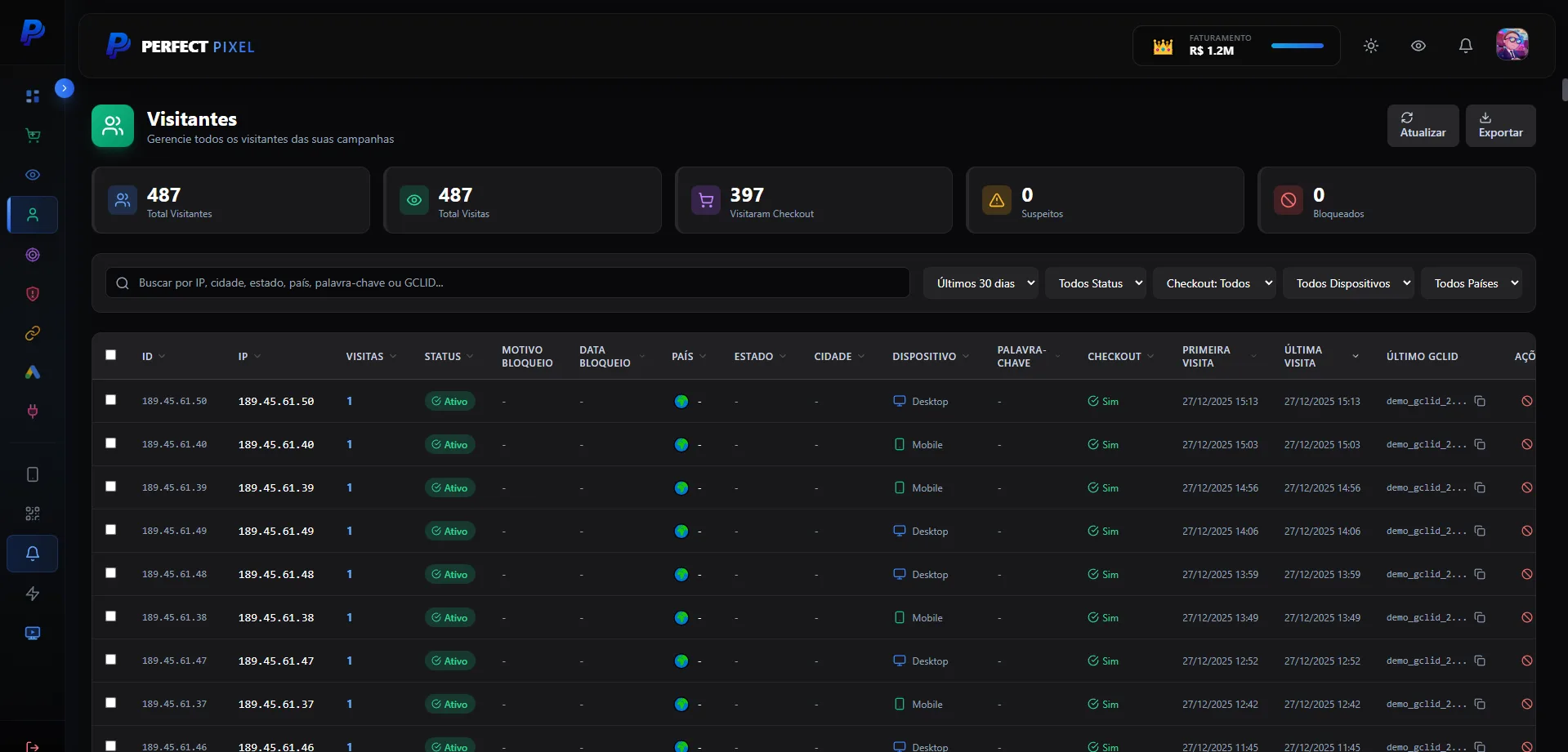Proteção anti-botMuito além de rastreamento. O Perfect Pixel entrega inteligência, proteção e otimização para você escalar com confiança.