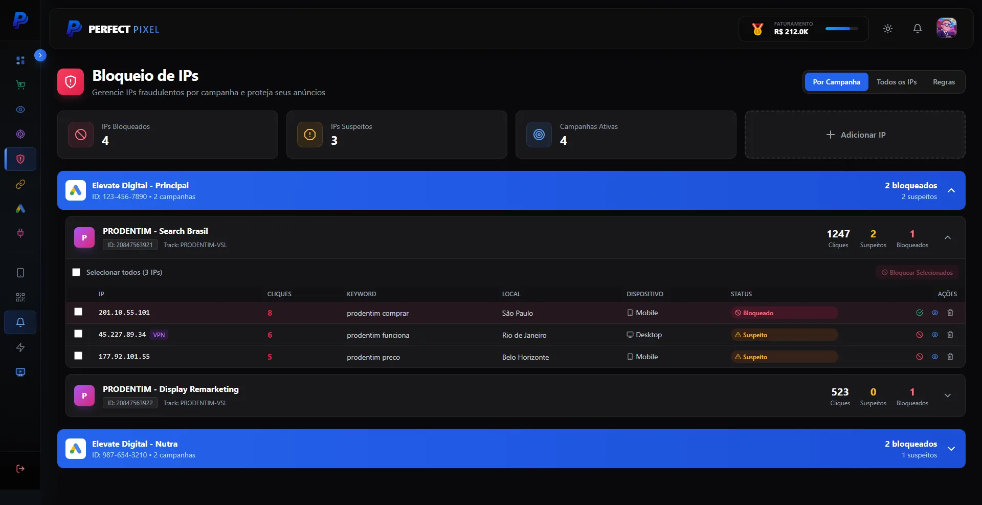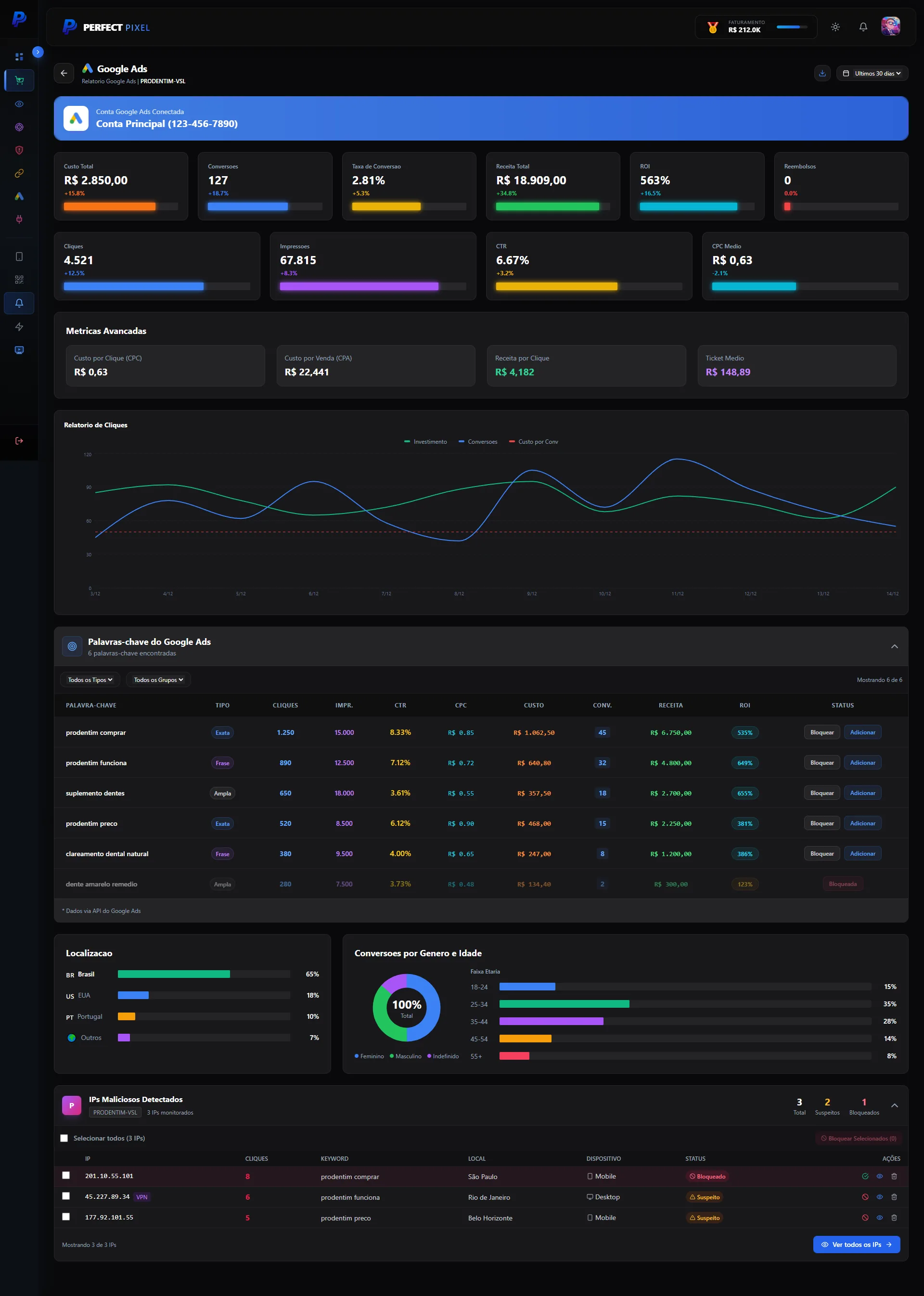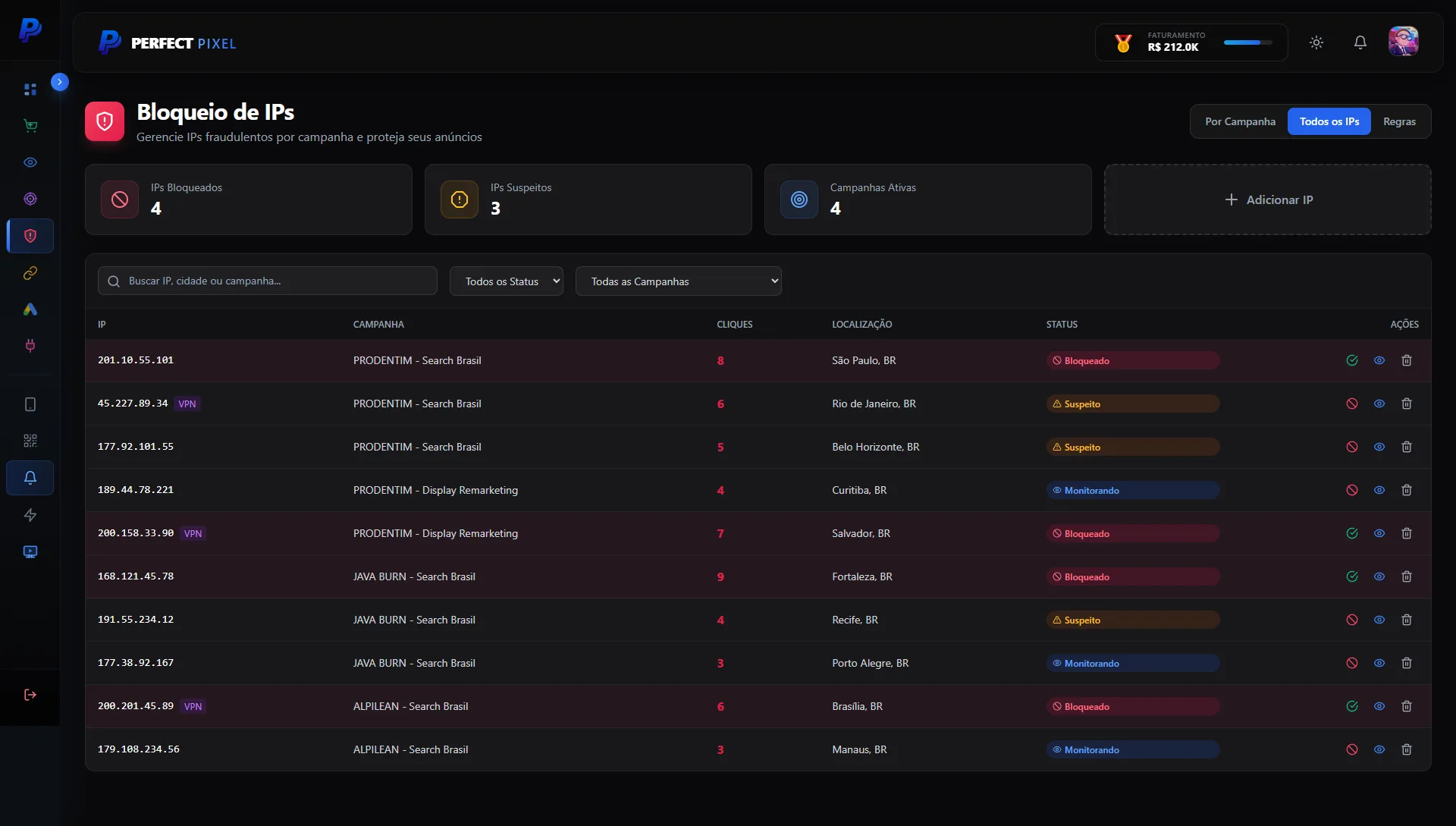 Bloqueie IPs suspeitos, reduza cliques inválidos e proteja seu ROI.